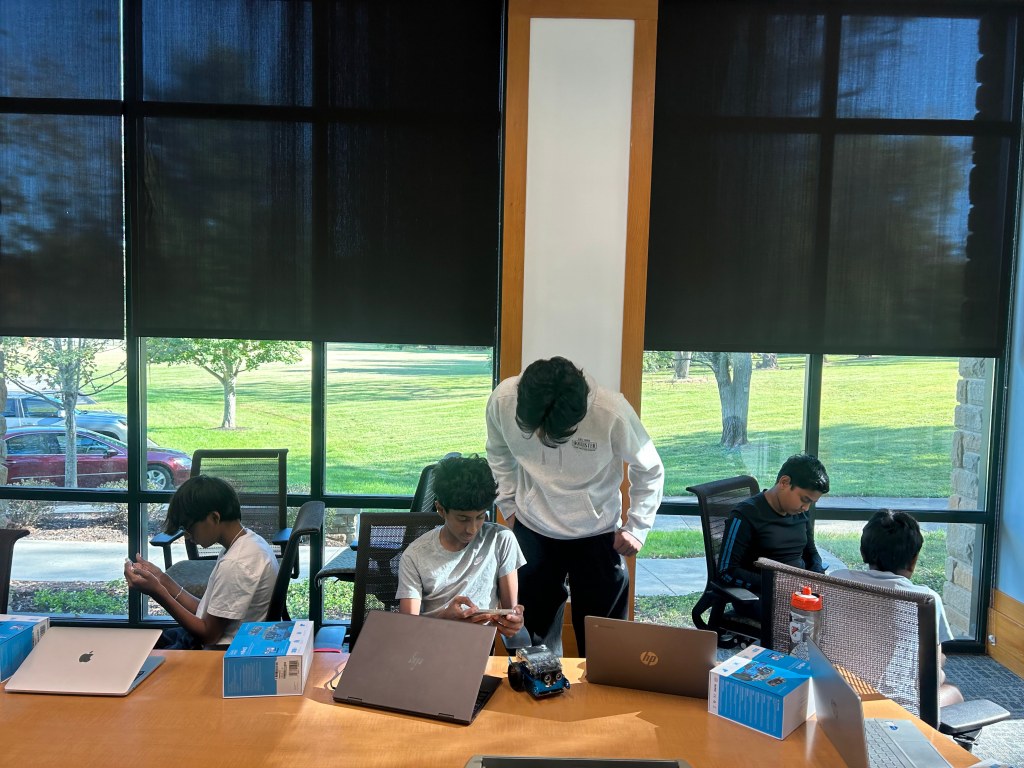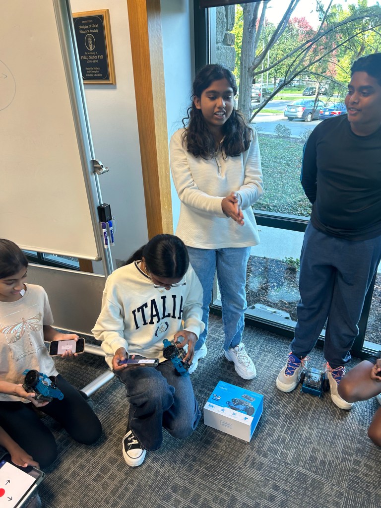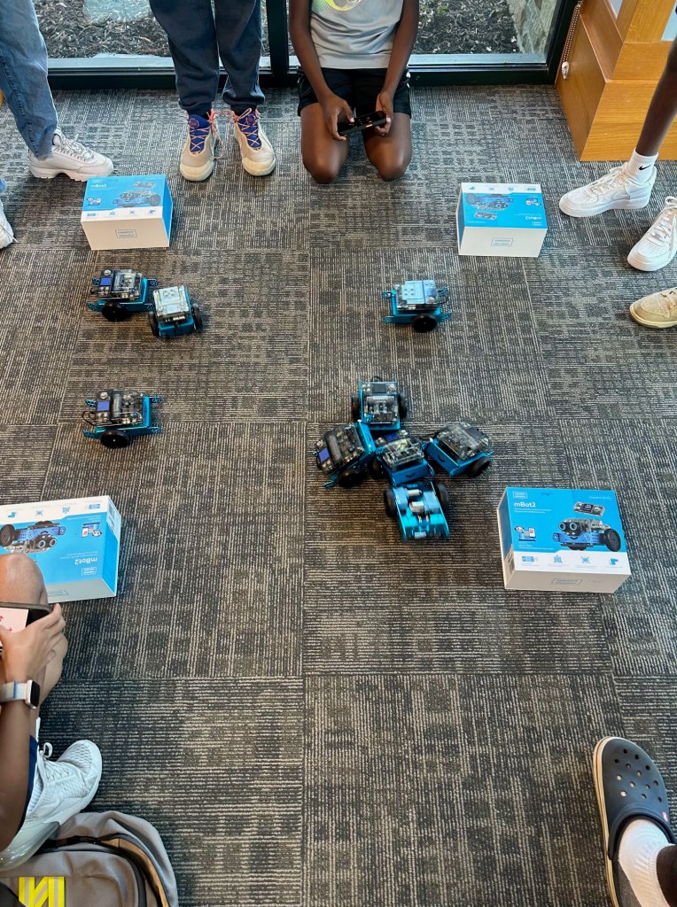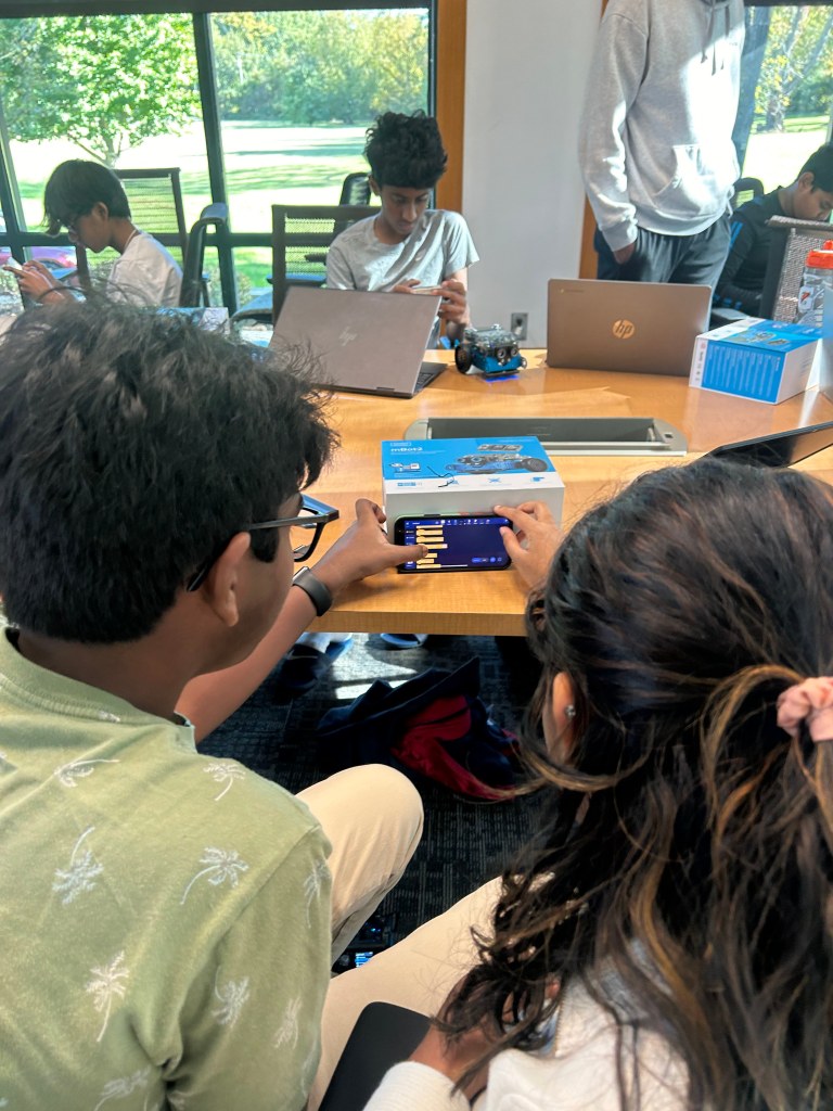 The coders learned how to create phone controllers to operate their M-Bots. They used them for a thrilling Battle Bots competition. They tested their programs in head-to-head matches, demonstrating creativity and problem-solving. Everyone is already looking forward to the next session, eager to continue building on these newfound skills!
